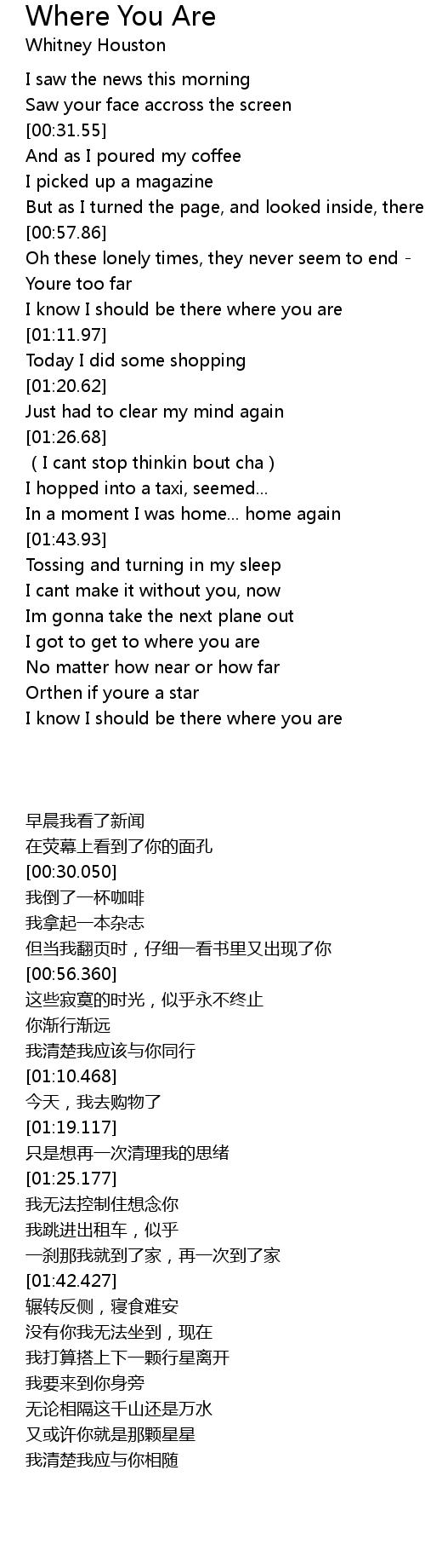 | [01:06.90] | I know I should be there where you are |