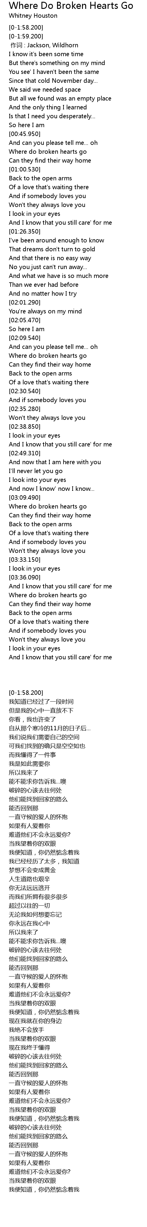 | [00:52.810] | Where do broken hearts go |