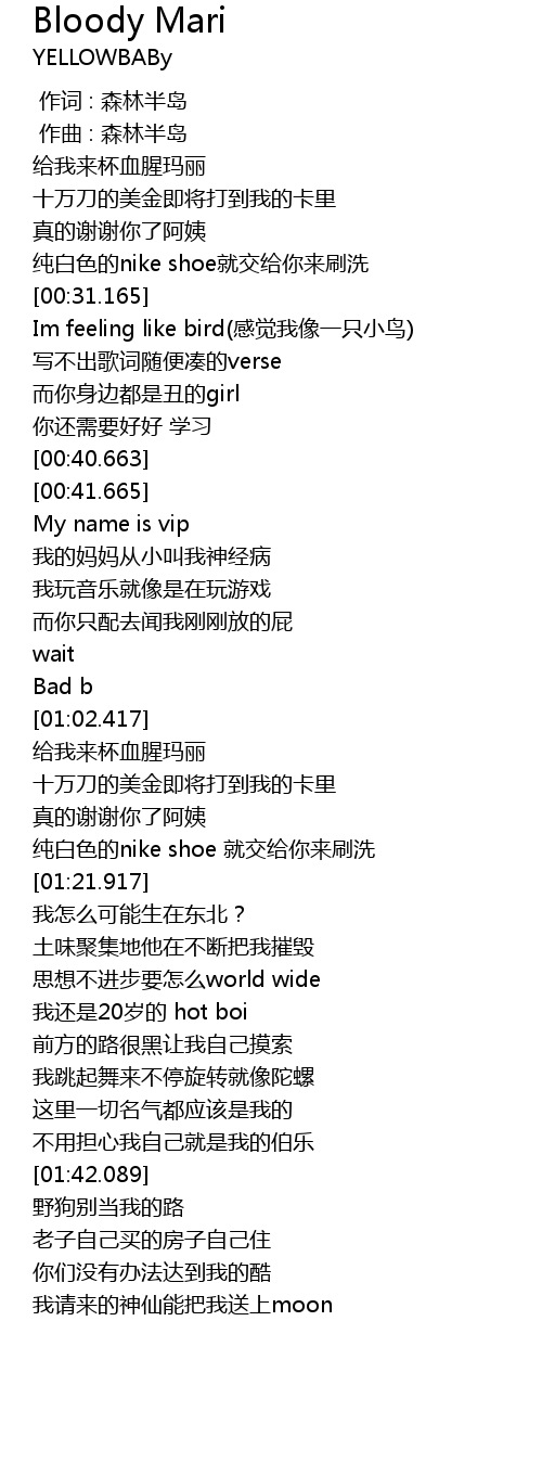 | [00:45.667] | 我的妈妈从小叫我神经病 |