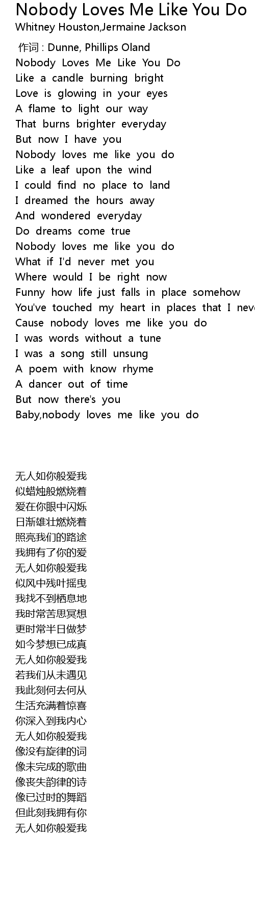 | [02:35.83] | Baby,nobody loves me like you do |