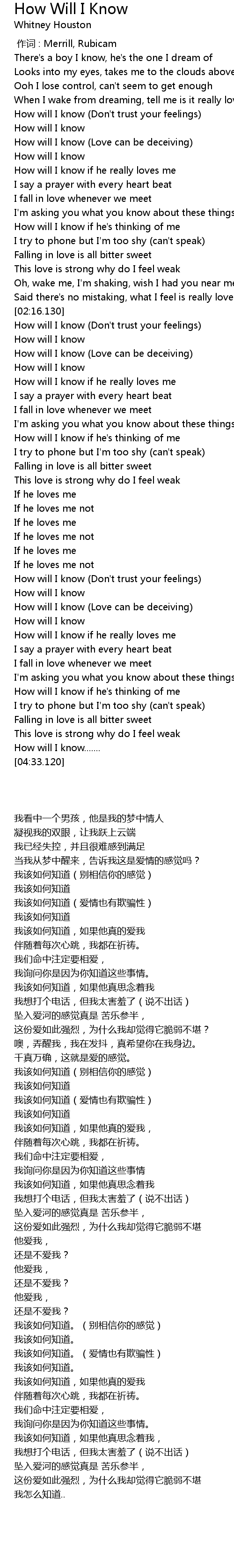| [03:38.950] | How will I know (Love can be deceiving) |