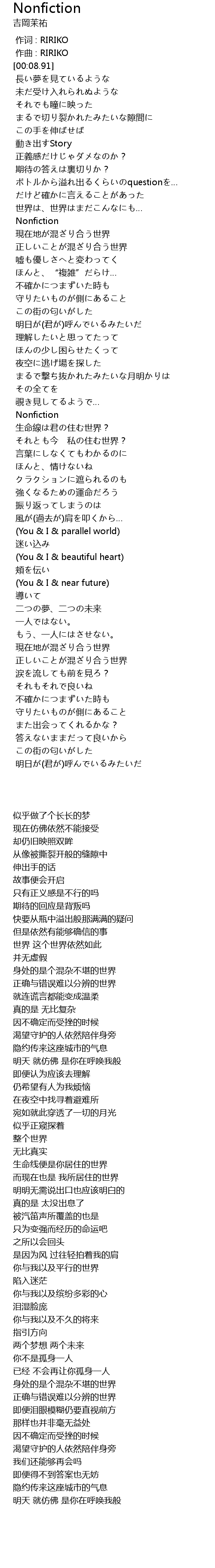 | [00:00.00] | zuo ci : RIRIKO |