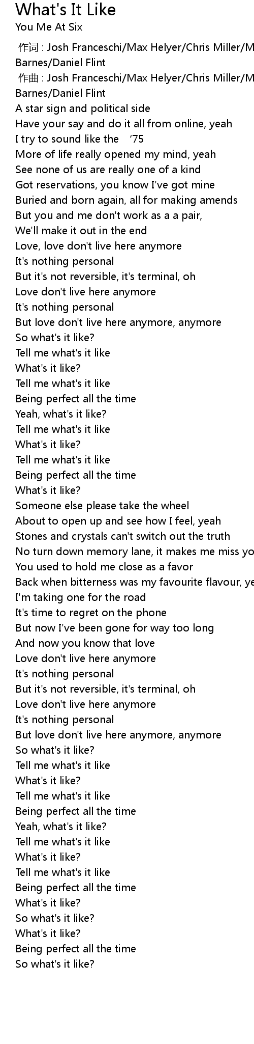 | [01:16.61] | But love don't live here anymore, anymore |