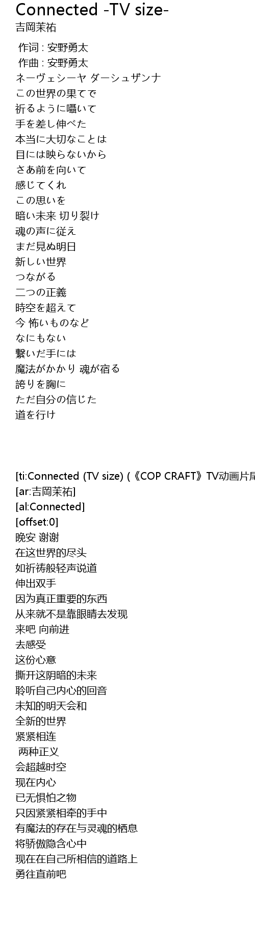 Connected -TV size- Lyrics