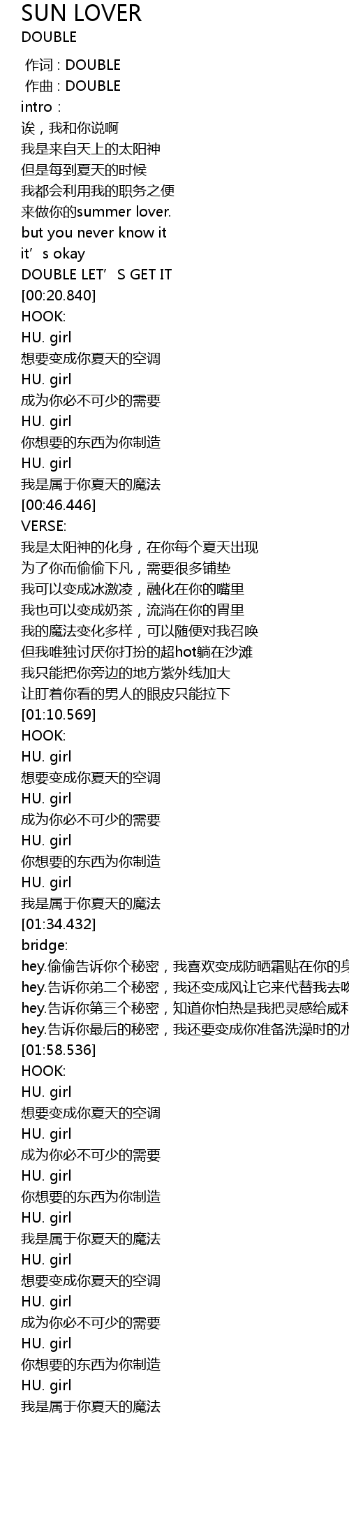 | [01:35.939] | hey.偷偷告诉你个秘密,我喜欢变成防晒霜贴在你的身体 |