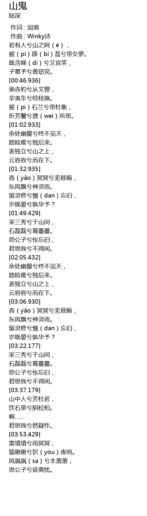 | [03:50.182] | 君思我兮然疑作。 |