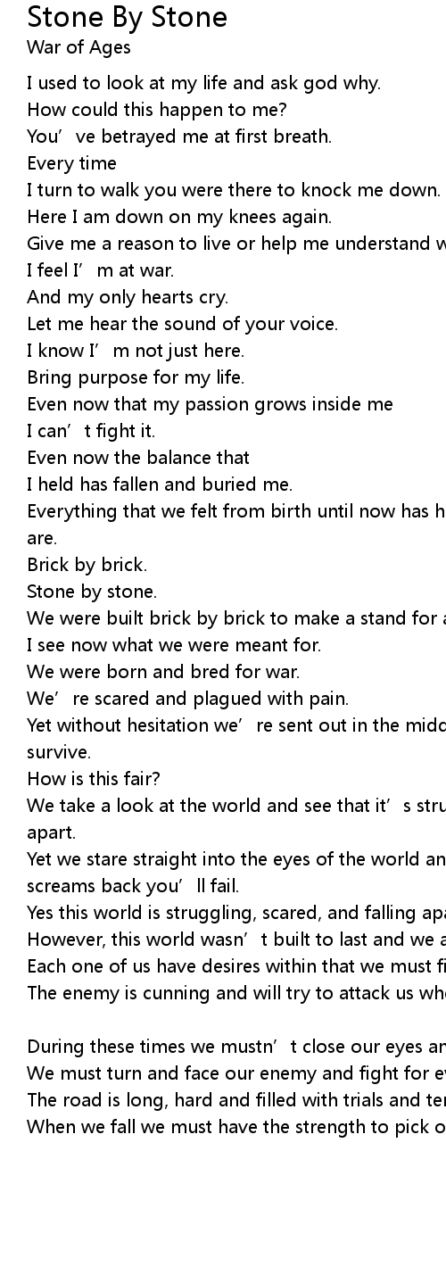 | Song | Stone By Stone |