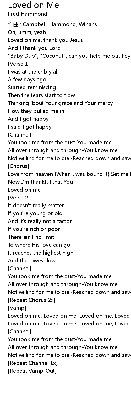 | Loved on me, Loved on me, Loved on me, Loved on me | |