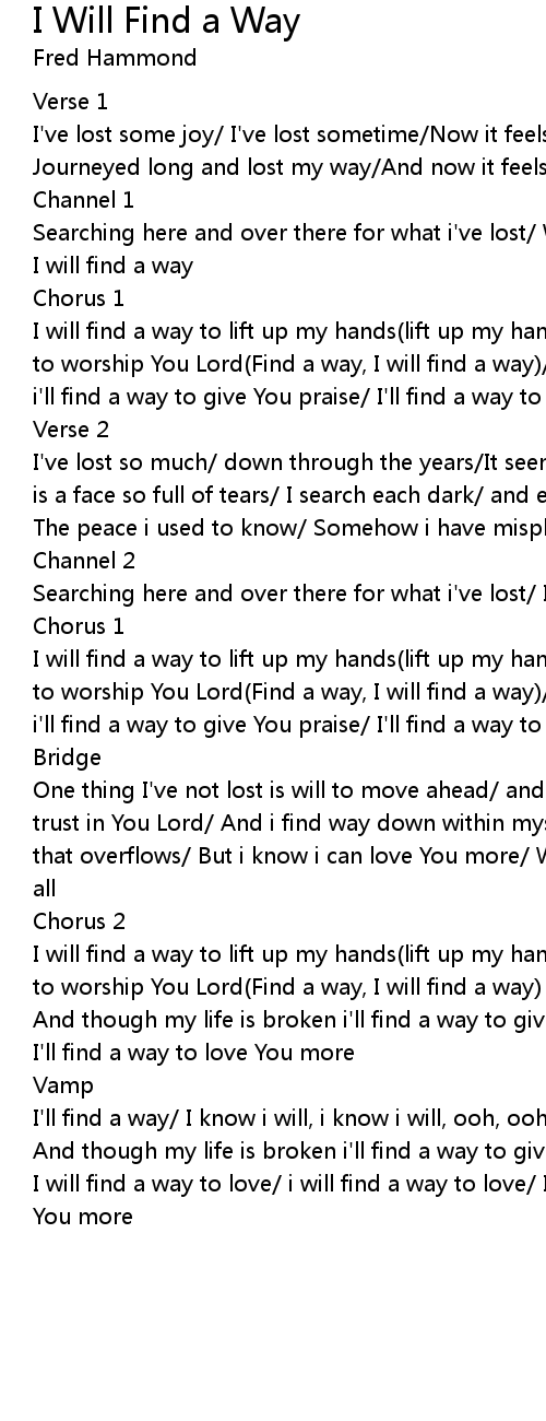 I will find a way to lift up my hands(lift up my hands)/ And i will find a way |