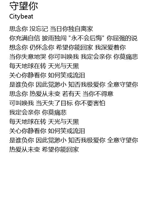 | [00:52.21] | 想念你 仍怀念你 希望你能回家 我深爱着你 |
