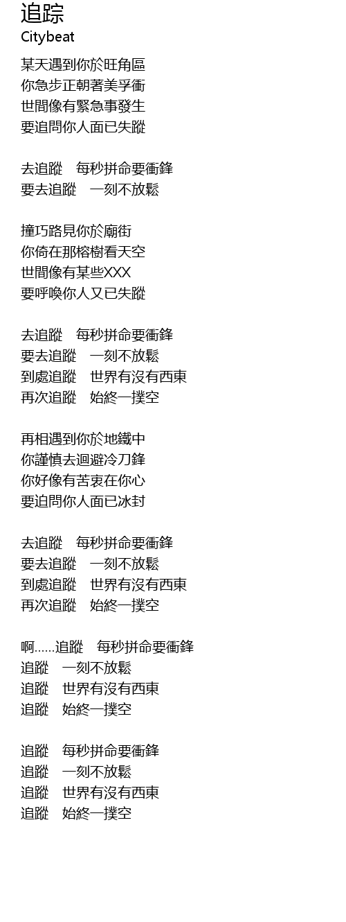 | 去追蹤 每秒拼命要衝鋒 | |