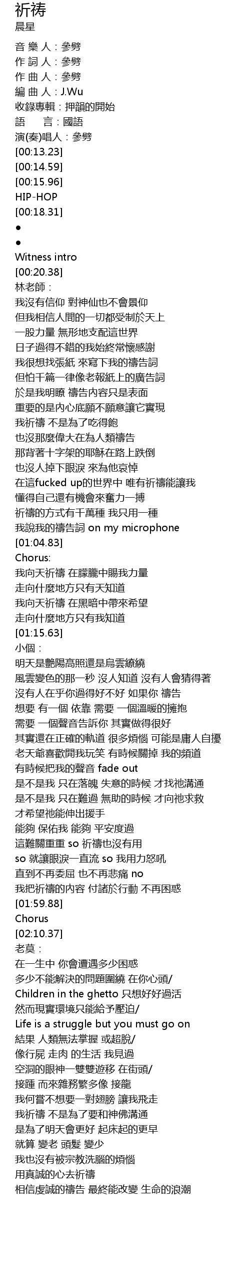 | [00:09.18] | 收錄專輯:押韻的開始 |