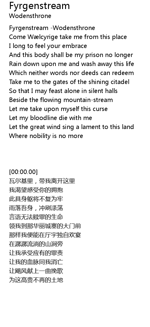 | [00:00.00] | Fyrgenstream -Wodensthrone |