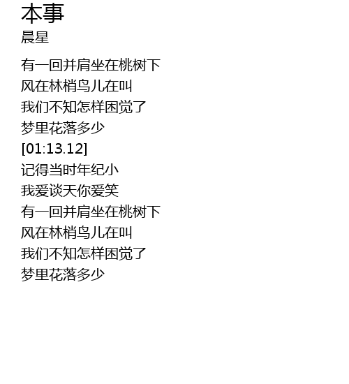 | [01:43.68] | 风在林梢鸟儿在叫 |