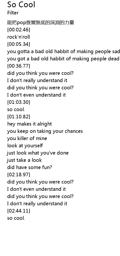 | [02:32.03] | did you think you were cool? |