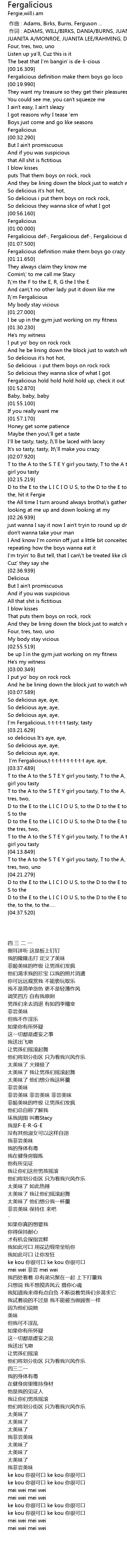 | [01:01.300] | Fergalicious def, Fergalicious def, Fergalicious def |