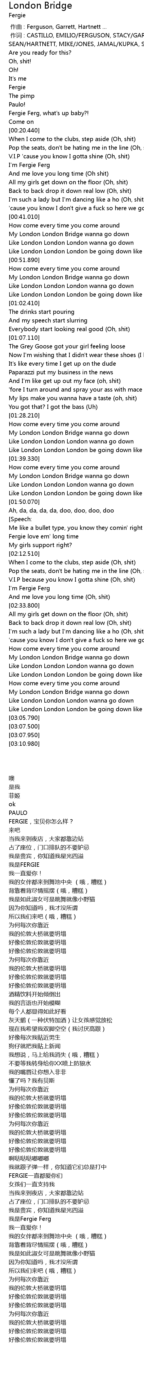 | [02:47.480] | My London London Bridge wanna go down |