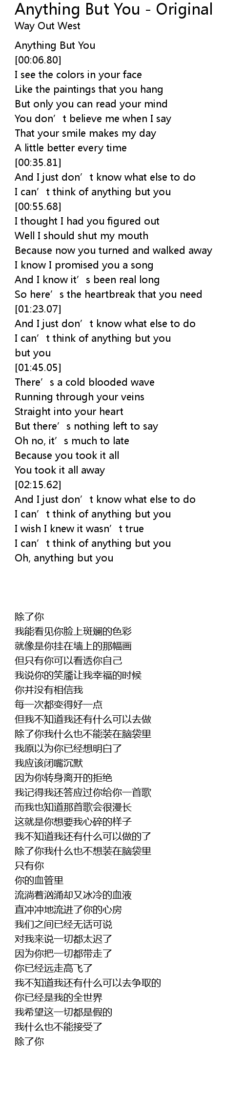 | [01:35.50] | I can' t think of anything but you |