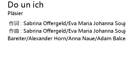 | [00:00.00-1] | zuo qu : Sabrina Offergeld Eva Maria Johanna Soujon Jonas Bareiter Alexander Horn Anna Naue Adam Balcerak |