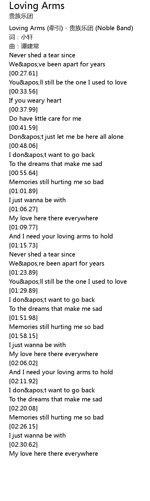 | [00:00.00] | Loving Arms qiān yǐn guì zú yuè tuán Noble Band |