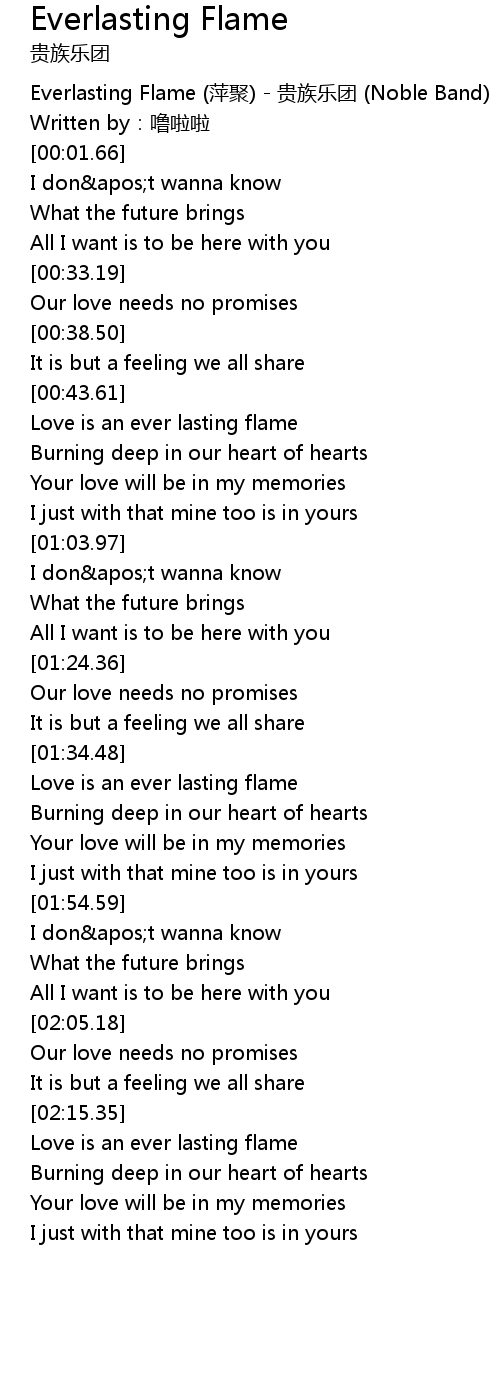 | [00:00.00] | Everlasting Flame píng jù guì zú yuè tuán Noble Band |