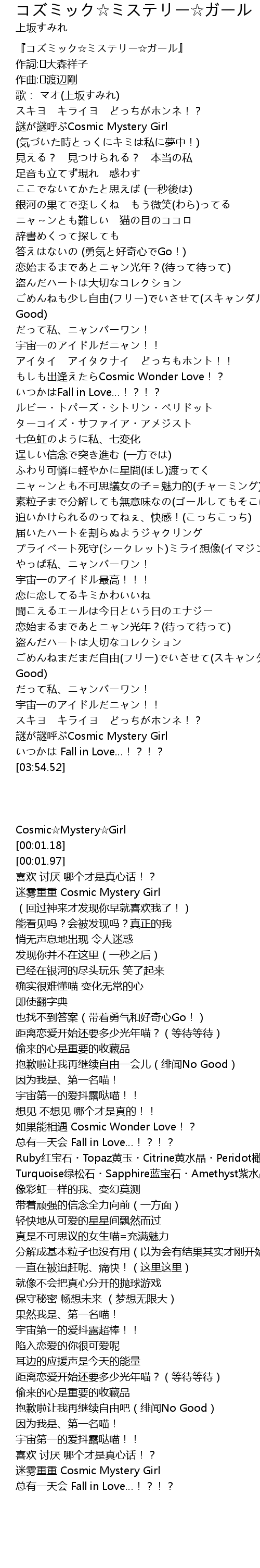 | [00:00.82] | 『コズミック☆ミステリー☆ガール』 |