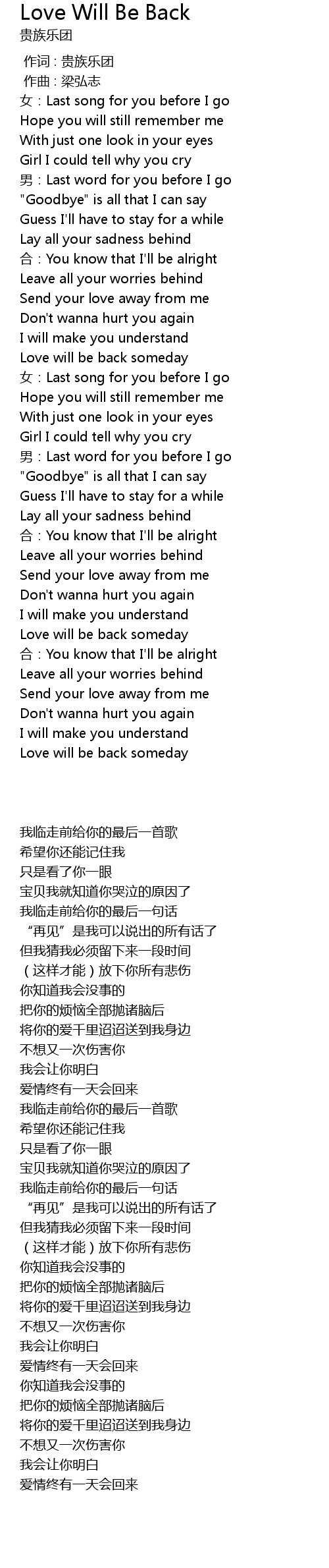| [01:37.35] | Love will be back someday |