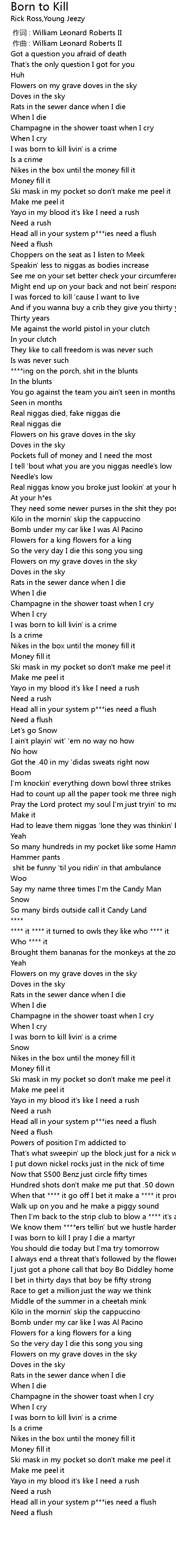 | [00:42.43] | I was forced to kill ' cause I want to live |