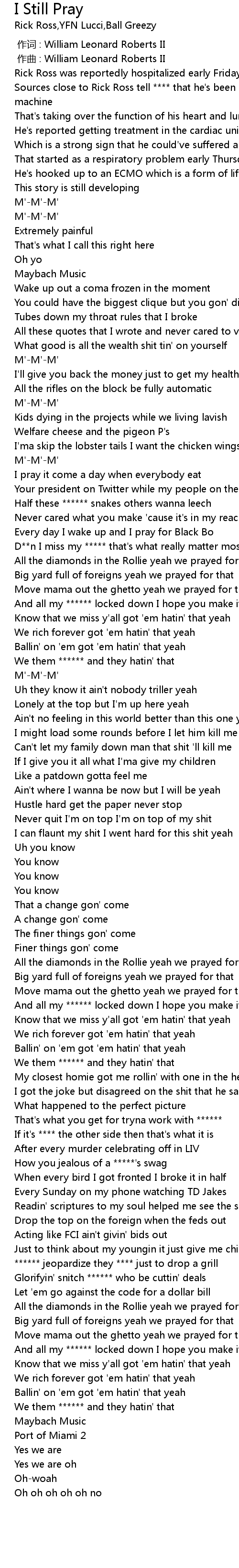 | [01:31.59] | D**n I miss my ***** that's what really matter most |