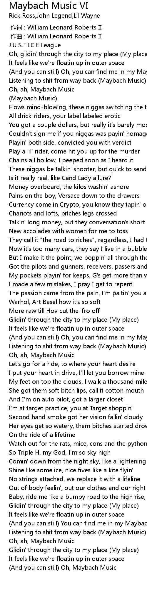 | [00:59.20] | Oh, ah, Maybach Music |