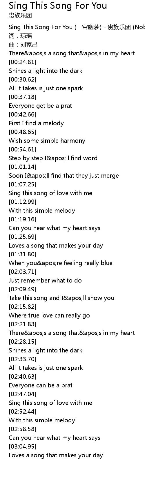 | [00:00.00] | Sing This Song For You yi lian you meng gui zu yue tuan Noble Band |