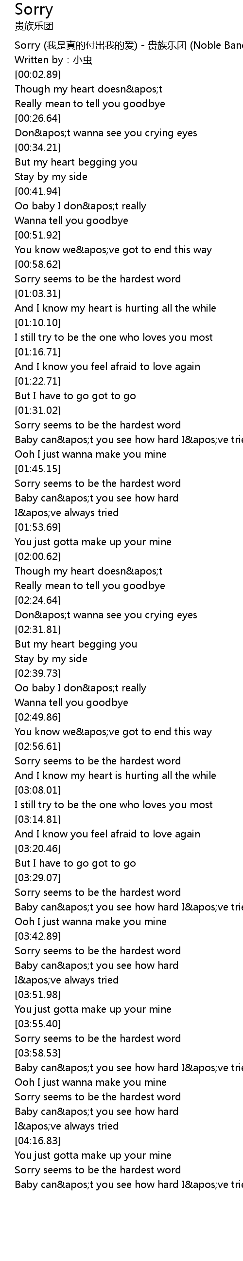 | [03:55.99] | Sorry seems to be the hardest word |