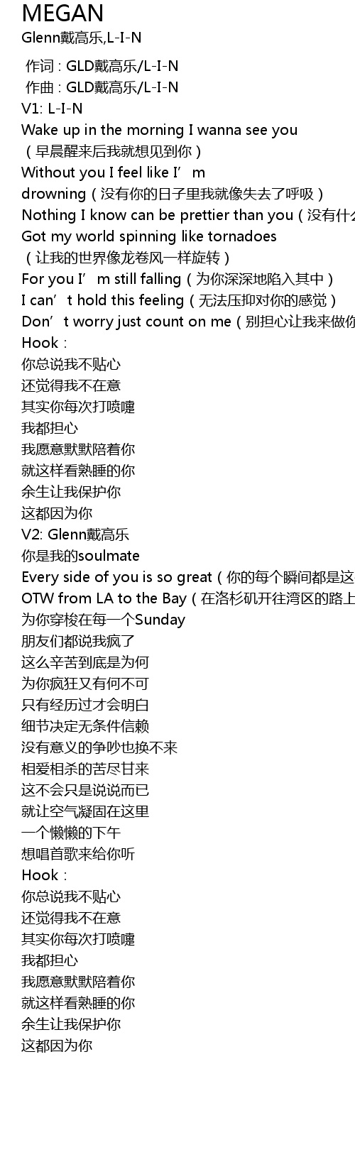 | [00:13.022] | Wake up in the morning I wanna see you zǎo chén xǐng lái hòu wǒ jiù xiǎng jiàn dào nǐ |