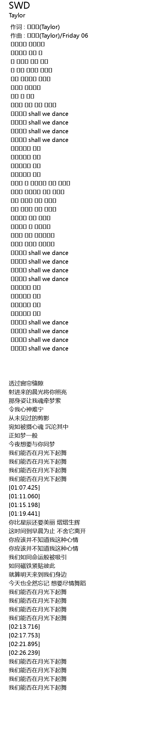 | [00:01.000] | zuo qu : Taylor Friday 06 |