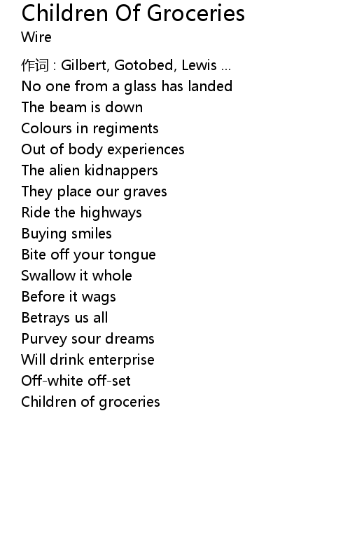 | 作词 : Gilbert, Gotobed, Lewis ... | |