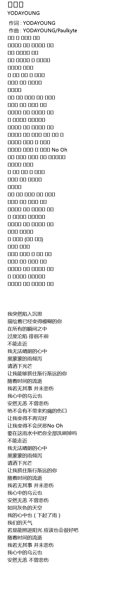 | [00:00.000] | 作词 : YODAYOUNG |