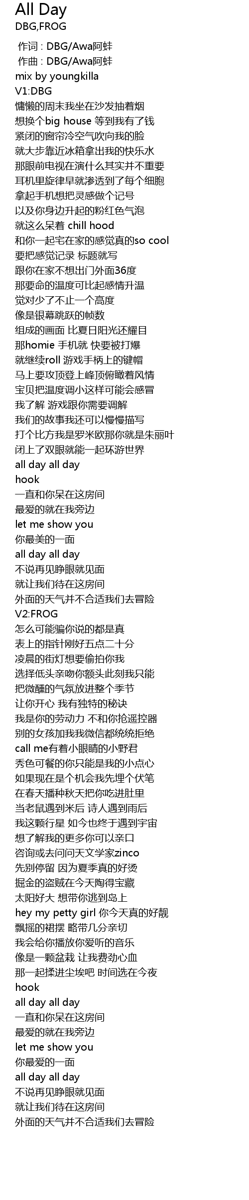 | [00:00.000] | 作词 : DBG/Awa阿蛙 |