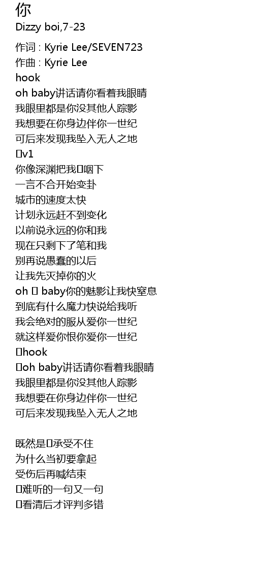 | 作词 : Kyrie Lee/SEVEN723 | |