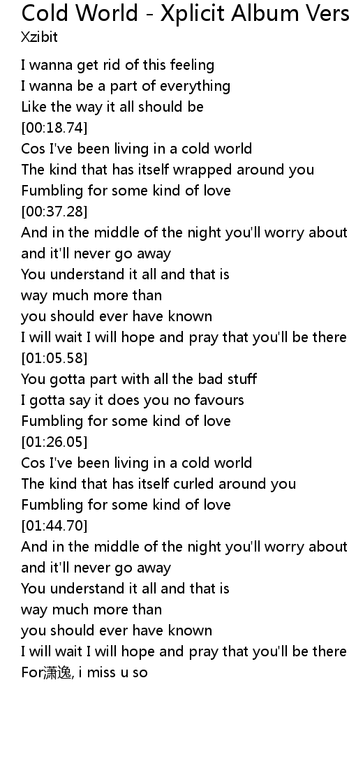| [01:26.55] | Cos I' ve been living in a cold world |