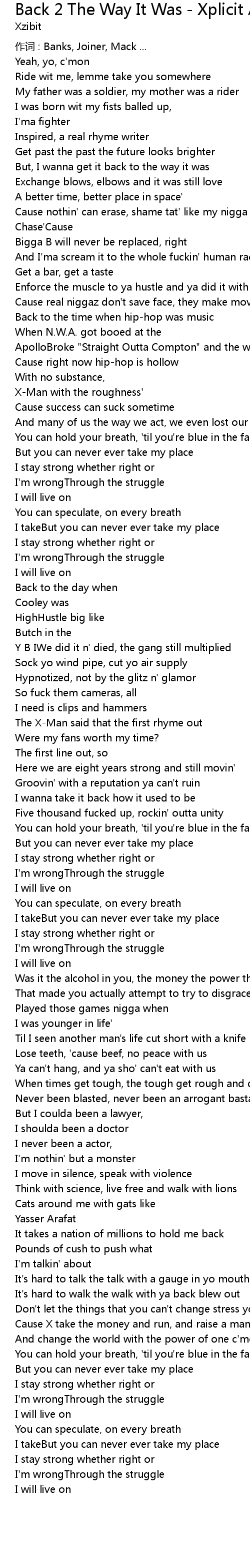 | Song | Back 2 The Way It Was - Xplicit Album Version |