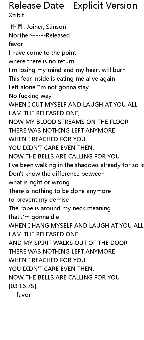 | [01:18.11] | WHEN I CUT MYSELF AND LAUGH AT YOU ALL |