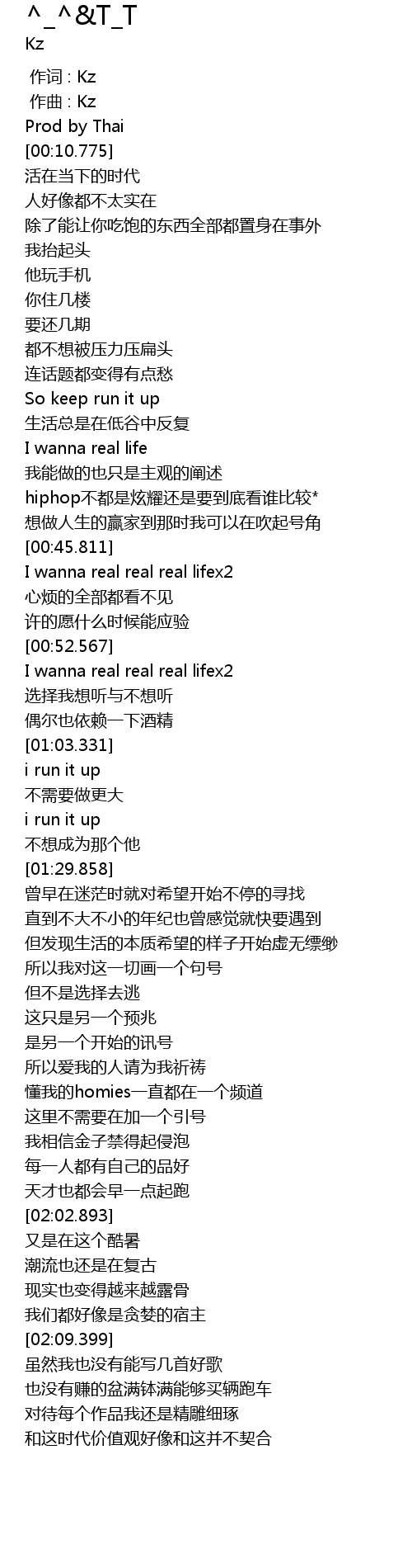 | [00:00.000] | 作词 : Kz |