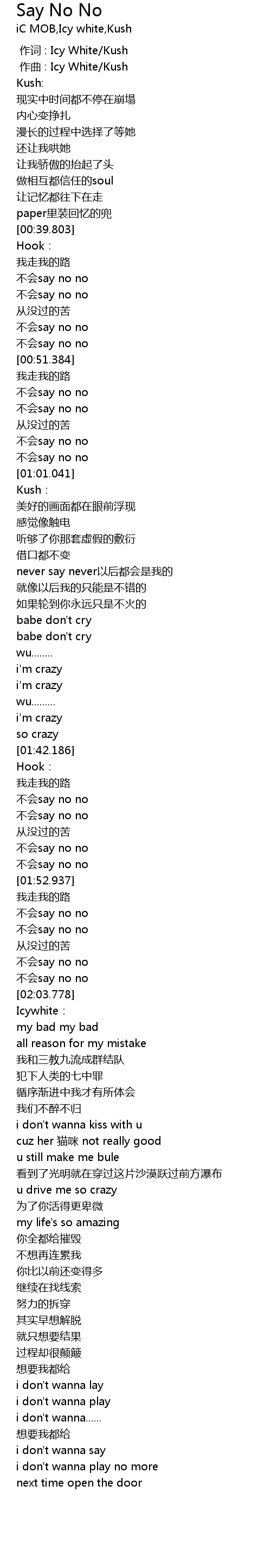 | [01:00.525] | 不会say no no |