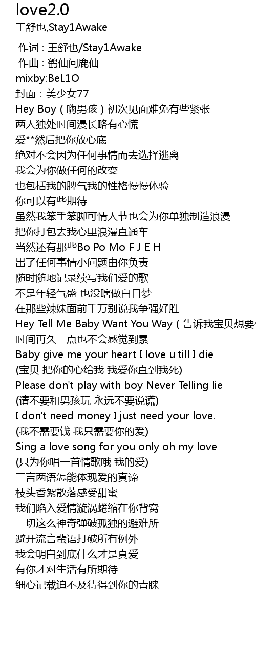 | [00:00.000] | zuo ci : wang shu ye Stay1Awake |
