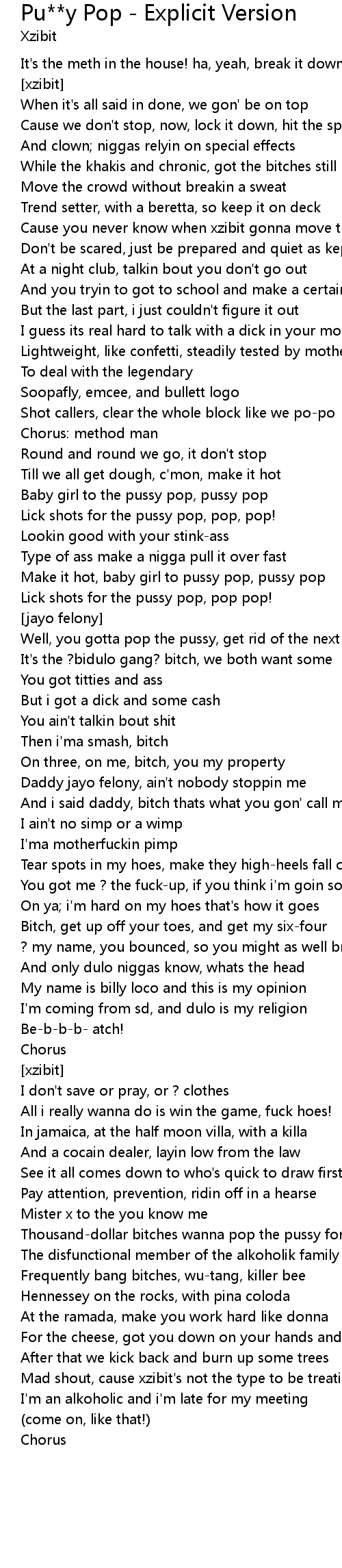 | Well, you gotta pop the pussy, get rid of the next with a name on your gums | |