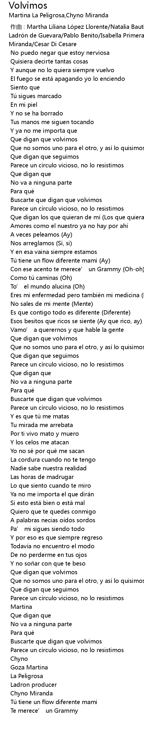 | [00:40.526] | Buscarte que digan que volvimos |