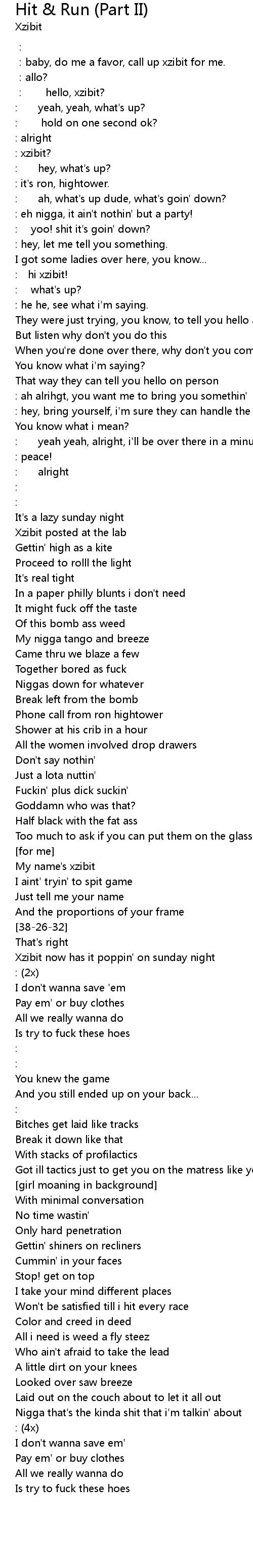 | [xzibit]: ah, what's up dude, what's goin' down? | |
