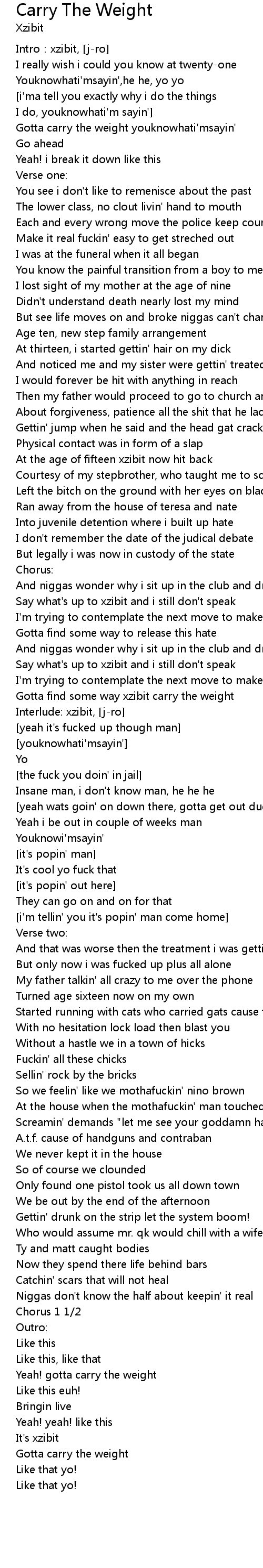 | Gotta find some way xzibit carry the weight | |