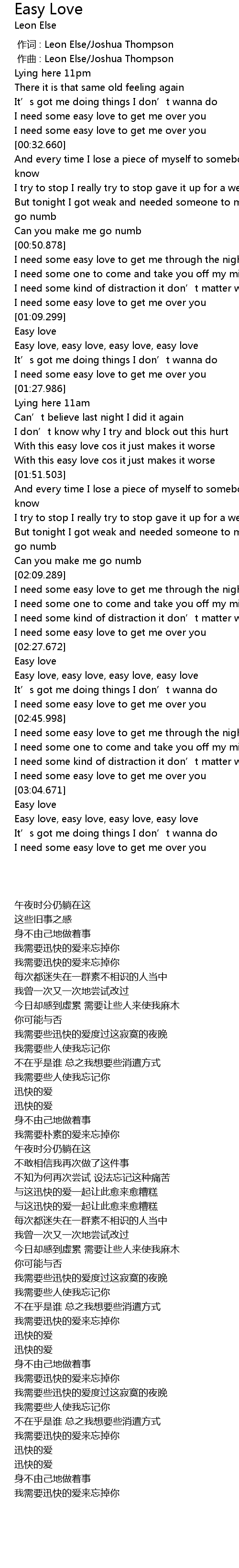 | [00:00.000] | 作词 : Leon Else/Joshua Thompson |