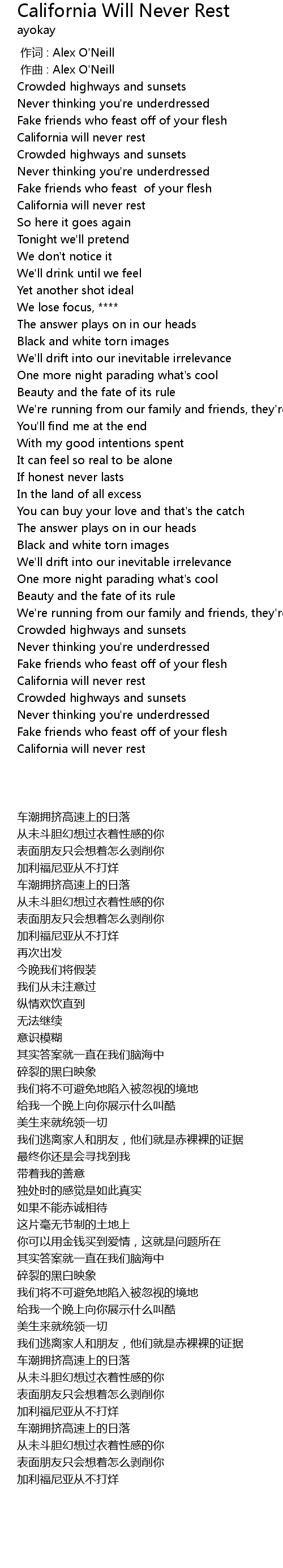 | [03:23.33] | California will never rest |